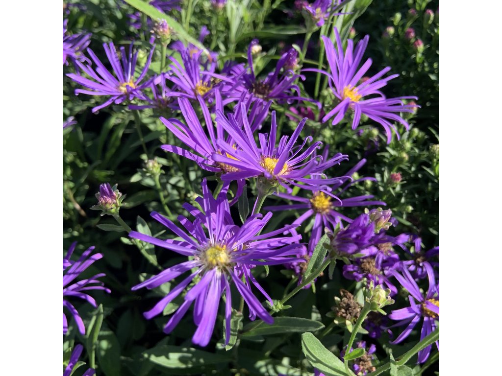 Kompaktní druh hvězdnice s výraznými tmanv fialovými květy se žlutým středem, vhodná i do nádob.