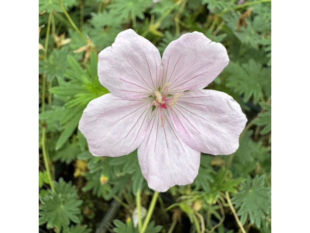 Jemný nízký kakost se světle růžovými květy, nenáročný na pěstování. Na podzim okraje listů barví do červena.
