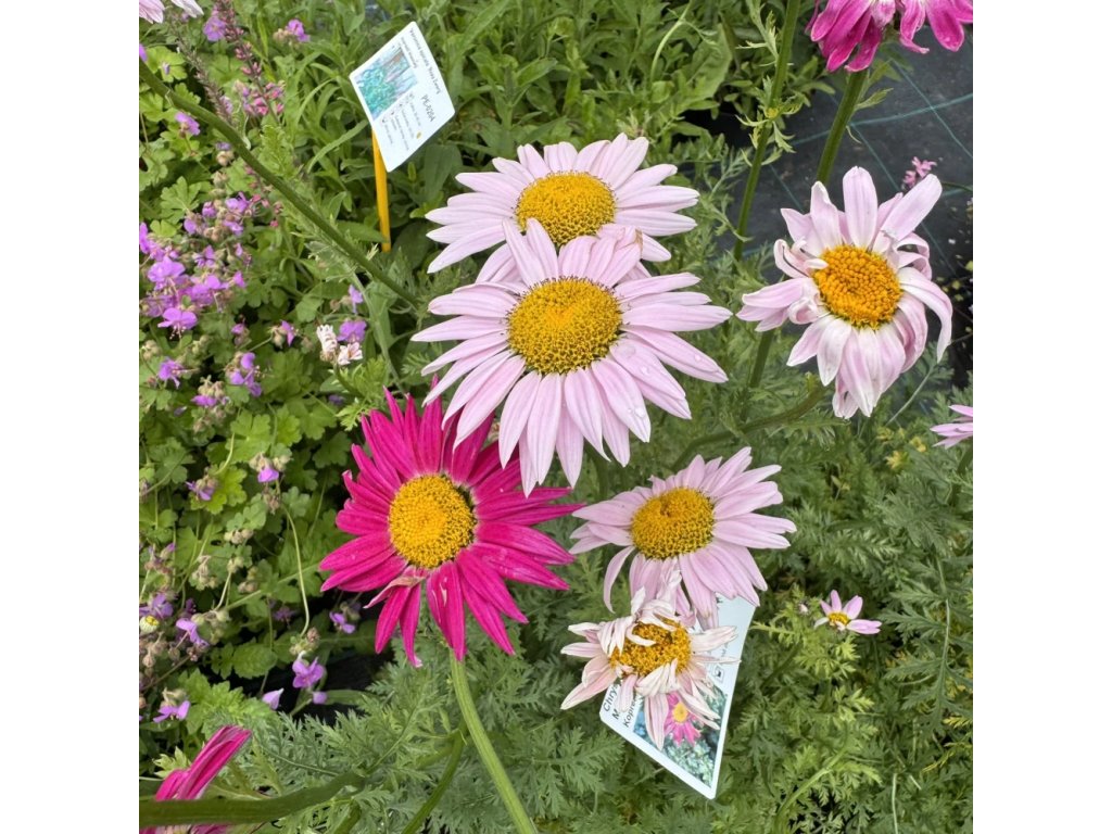 Kopretina Robinson Red Mixture (syn. Tanacetum coccineum) vytváři mix květů, které jsou vhodné k k řezu. . Velké květy jsou tmavě růžové, červené, bílé se žlutým středem. Nenáročná, plně mrazuvzdorná.