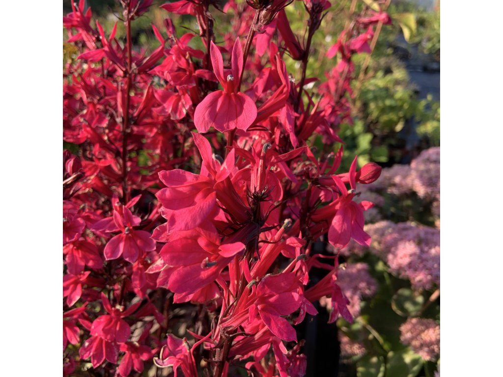 Lobelka s krásmými sytě růžovými květy, nenáročná, před zimou je dobré ji dobře zalít a na zimu přikrýt. Doporučujeme během růstu pravidelné hnojení.