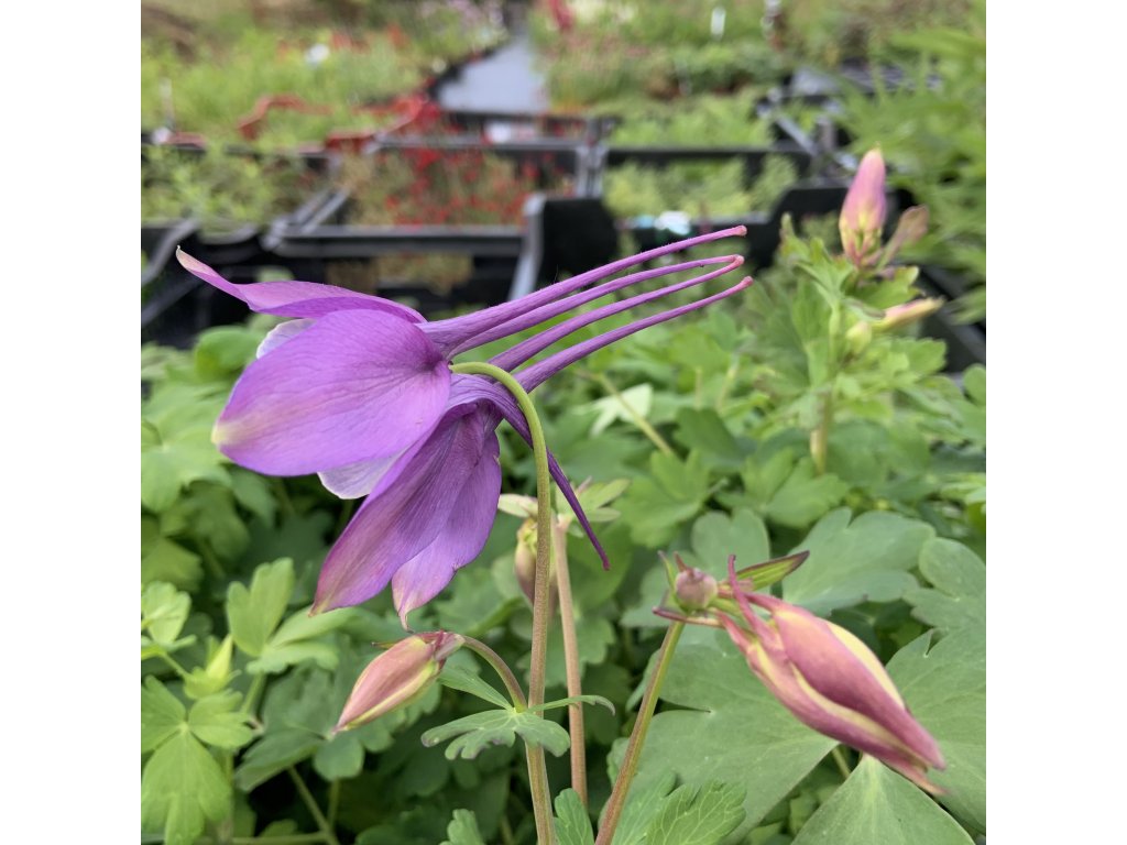 Orlíček s výrazným modrofialovým květem, nenáročný druh na slunce i do polostínu.