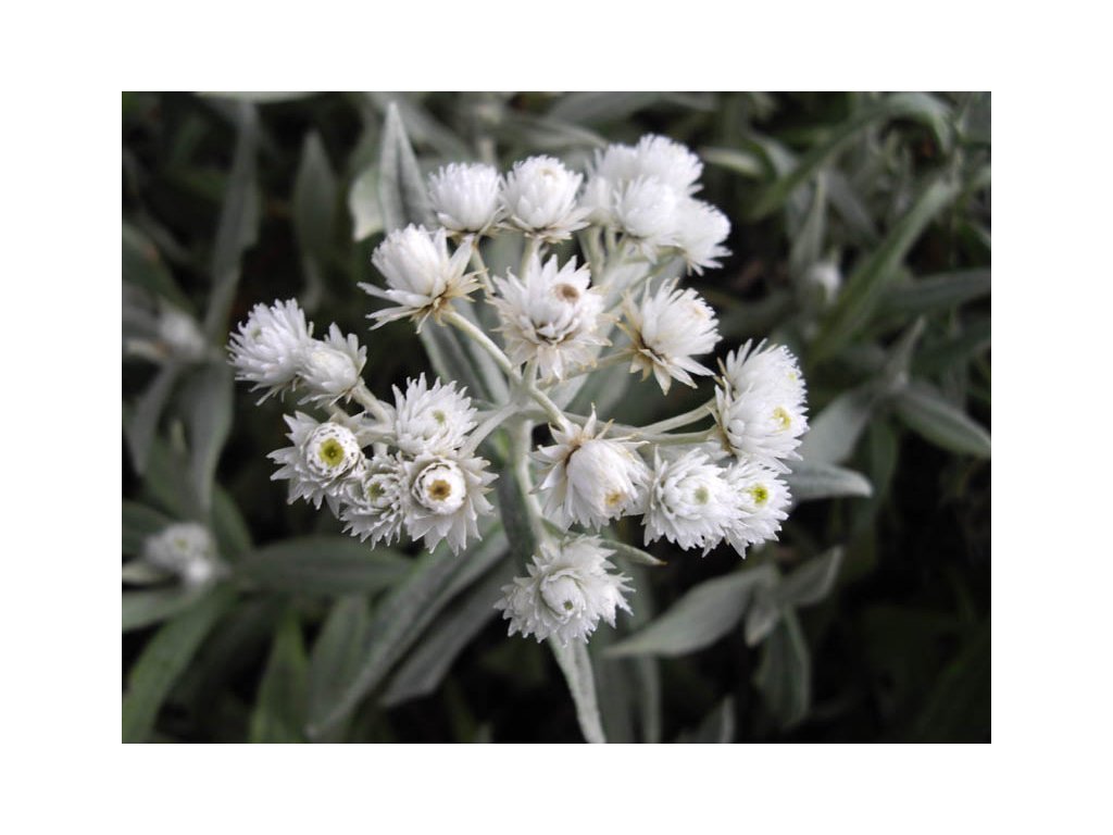 Stříbřitě šedá trvalka, tvoří husté keříky s bílými květy. Vhodná pro slunná suchá stanoviště.