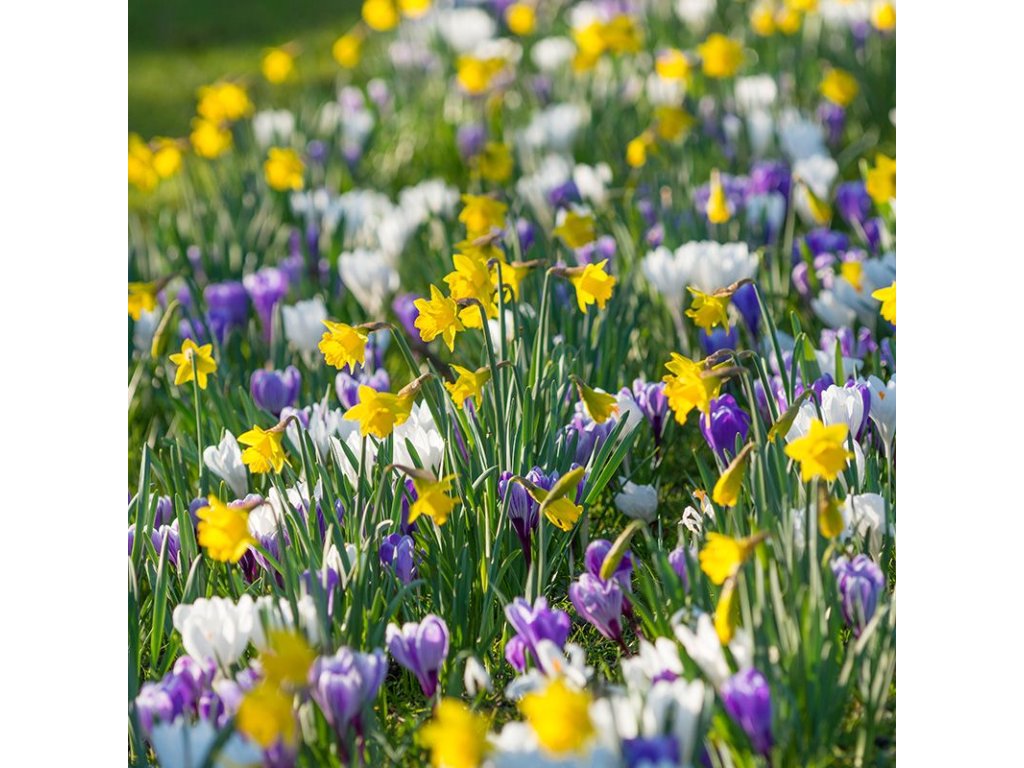 Jednoduchá jarní směs narcisů a krokusů v typických barvách, které k jaru patří.