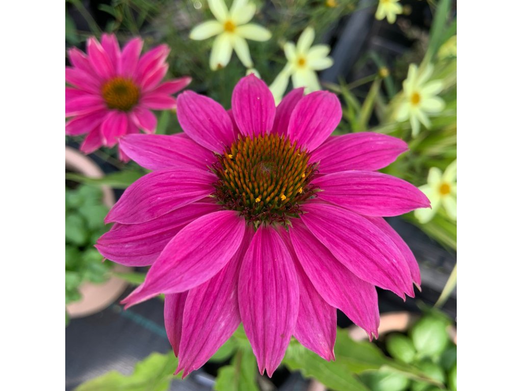 Echinacea kvetoucí krásnými vekými květy tmavě růžové barvy. Nenáročná na pěstování, má ráda slunce, ale snese i mírný polostín. Vhodná do smíšených trvalkových záhonů.