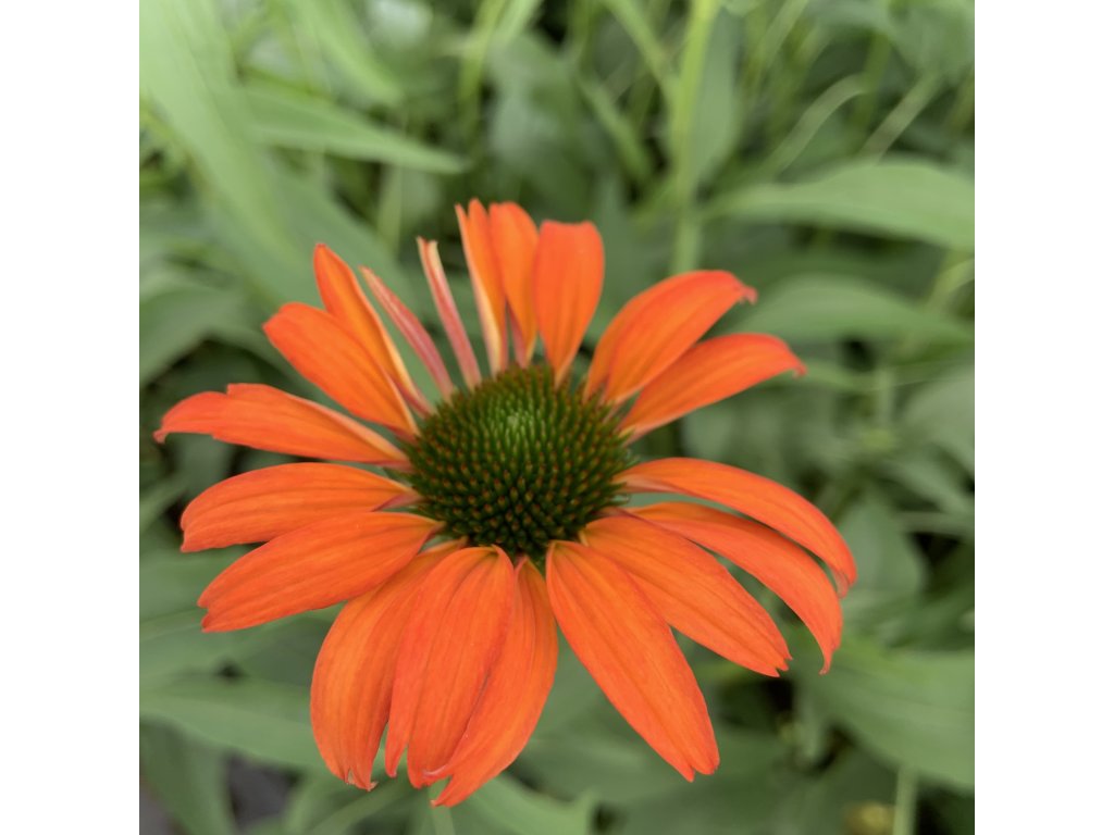 Echinacea kvetoucí krásnými vekými sytě oranžovými květy. Nenáročná na pěstování, má ráda slunce, ale snese i mírný polostín. Vhodná do smíšených trvalkových záhonů.
